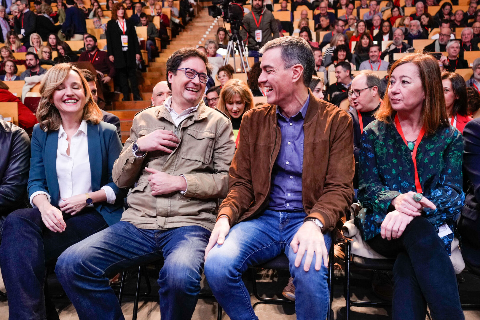 El secretario general del PSOE y presidente del Gobierno, Pedro Sánchez, los ministros Oscar López, Pilar Alegría y la presidenta del Congreso de los Diputados, Francina Armengol. | EFE