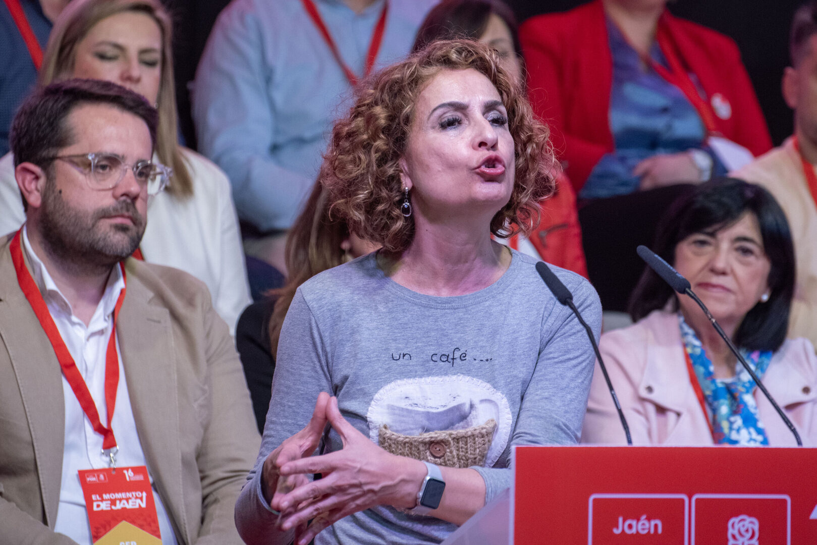 La ministra María Jesús Montero durante su intervención en la inauguración del Congreso Provincial del PSOE de Jaén. | EFE