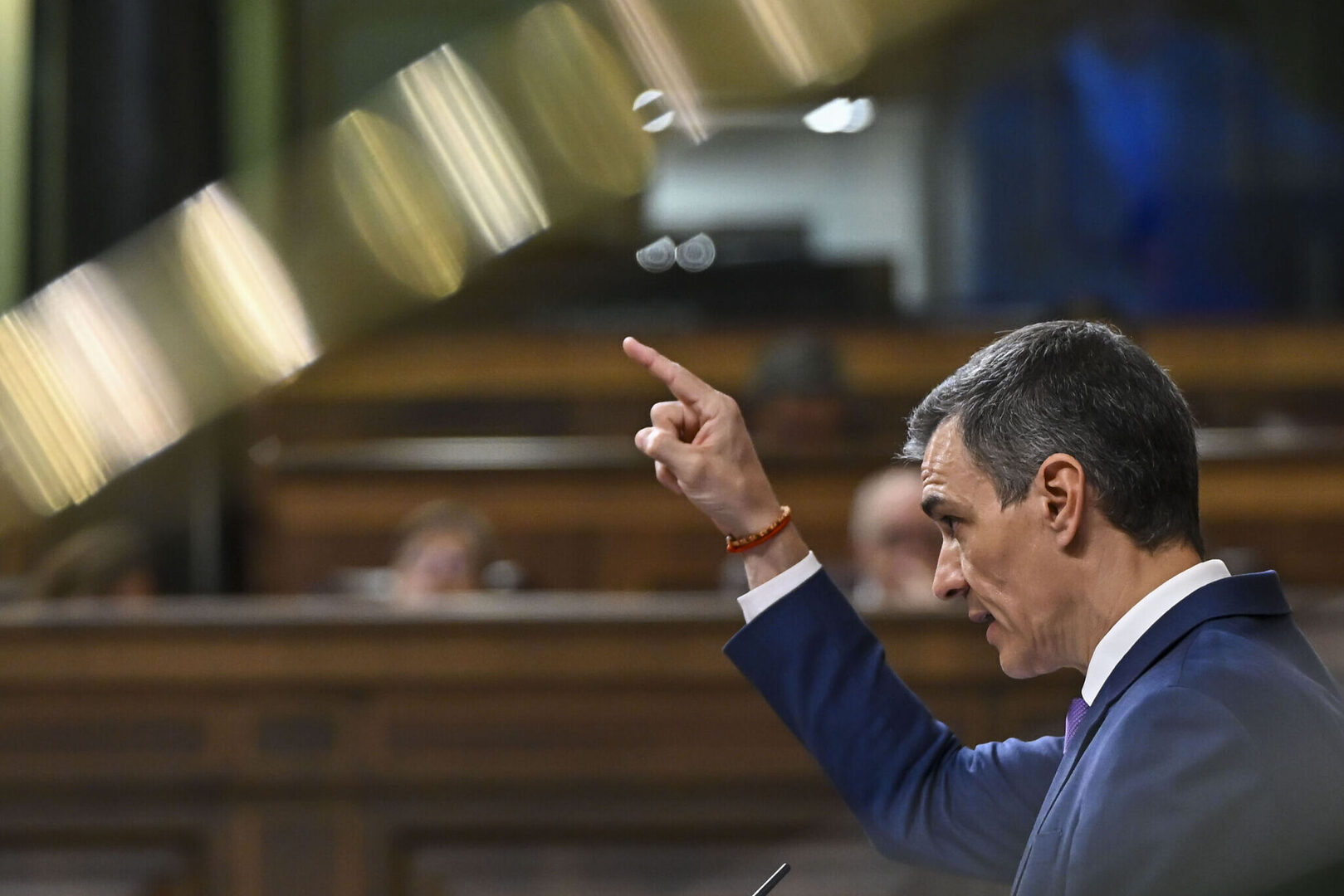 Pedro Sánchez, durante su intervención en el pleno del Congreso, sobre el plan de defensa y el apagón. | EFE/ Fernando Villar