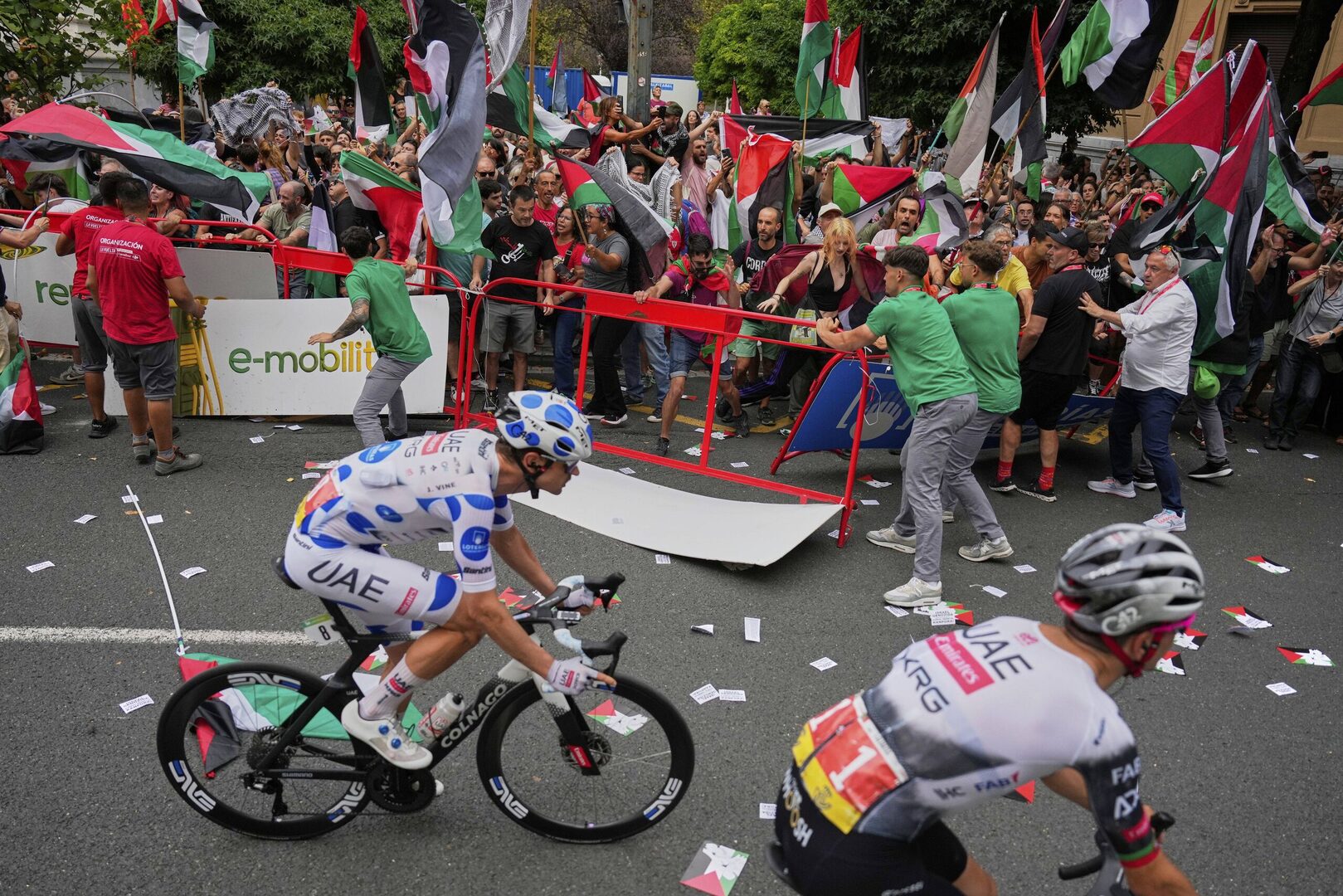 Manifestantes pro Hamás en la etapa de la Vuelta en Bilbao. | Cordon Press/AP Photo/Miguel Oses