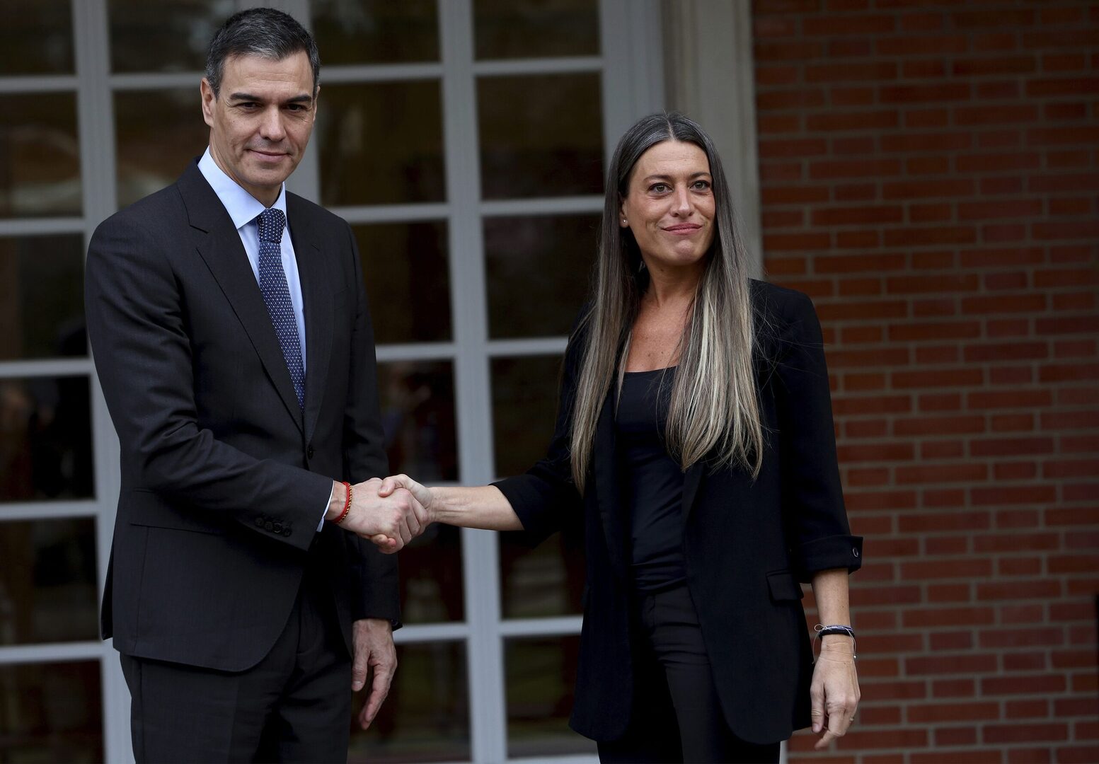 Madrid, Spain; March 13, 2025. Spanish President Pedro Sánchez meets with the spokespersons of the various parliamentary groups to discuss European security and increased defense spending at the Moncloa Palace. In the picture with Míriam Nogueras (Junts) Photo: Juan Carlos Rojas | Cordon Press