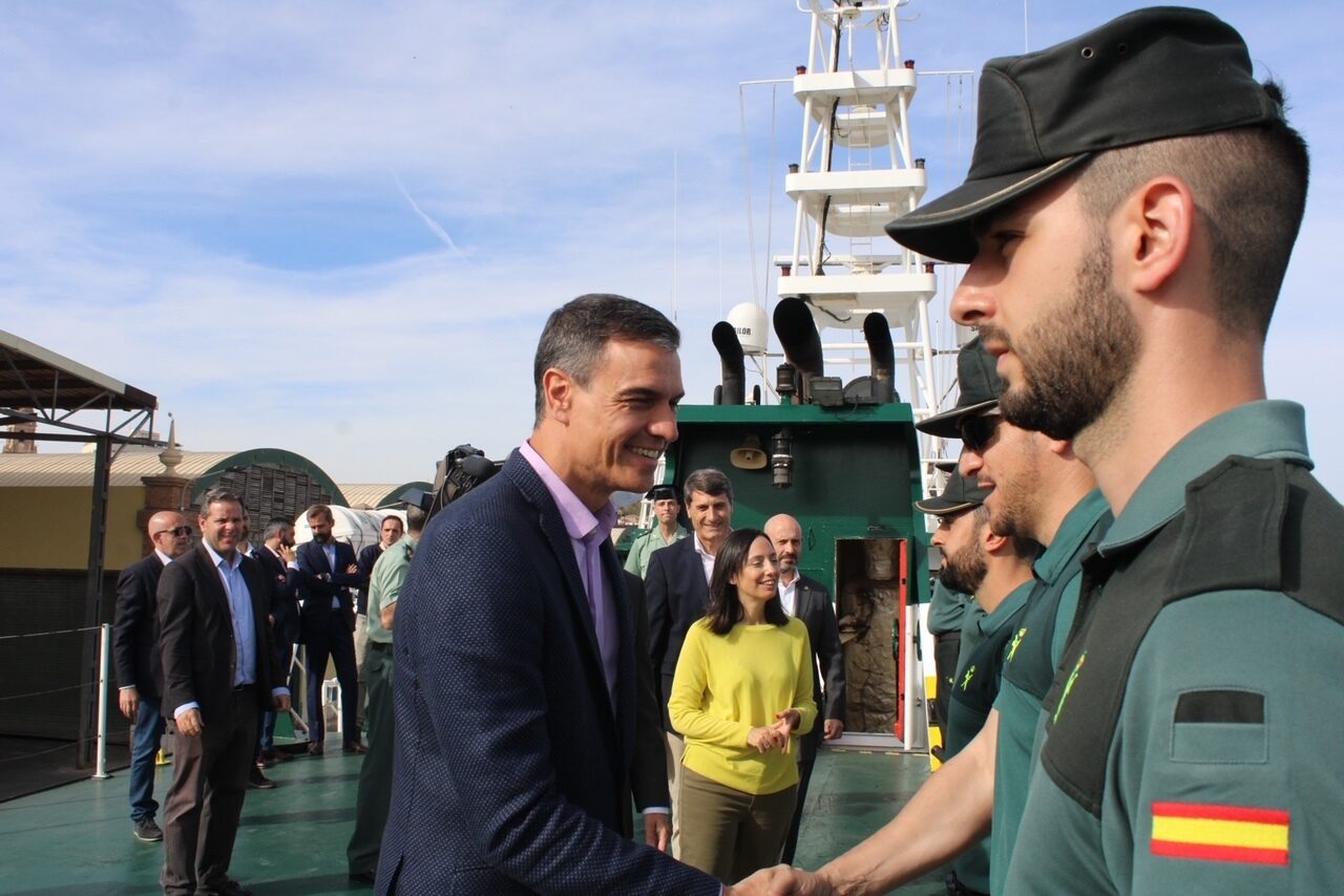 Pedro Sánchez en el Centro de Coordinación del Estrecho junto a miembros de la Guardia Civil | Europa Press