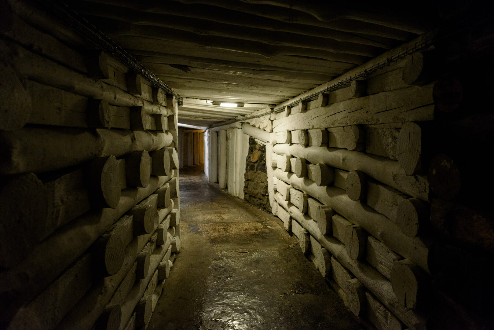 Uno de los angostos pasadizos apuntalado con troncos de madera. Los datos de esta maravillosa obra de ingeniería son abrumadores: más de 250 kilómetros de galerías y 9 plantas hacen de este lugar mágico en uno de los puntos más visitados de toda Polonia. | David Alonso Rincón