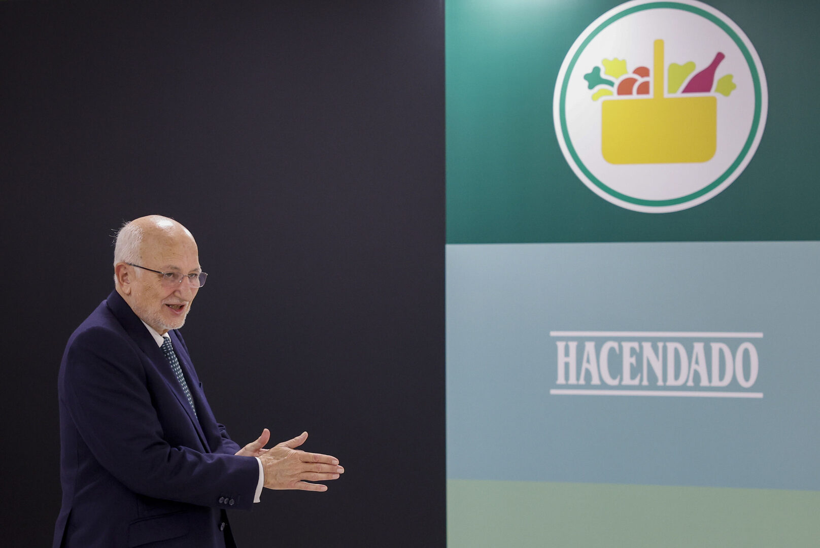 El presidente de Mercadona, Juan Roig, durante el acto de presentación de resultados de la empresa en el centro de coinnovación en Paterna (Valencia), donde ha anunciado este martes que la cadena de supermercados ha ganado 1.384 millones de euros en 2024, lo que supone un 37 % más que el ejercicio anterior. | EFE