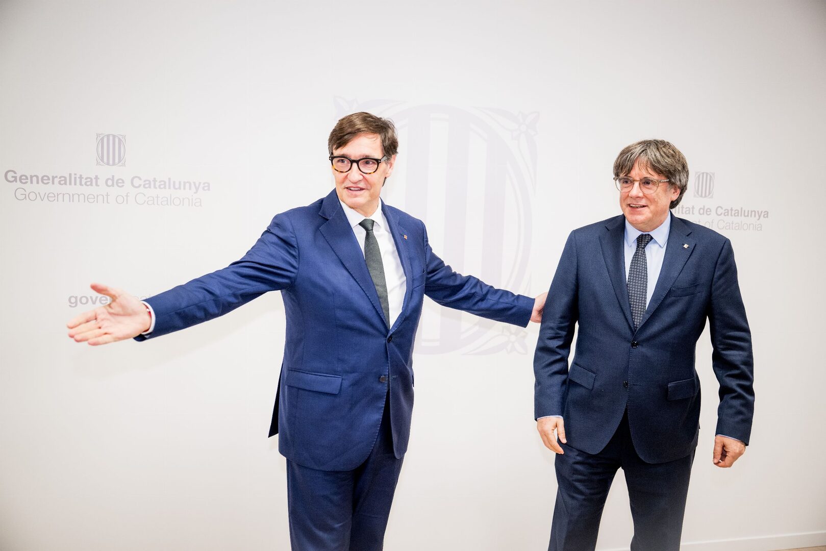 El presidente de la Generalidad, Salvador Illa, se reúne con el presidente fugado de Junts, Carles Puigdemont en Bruselas (Bélgica). | Europa Press