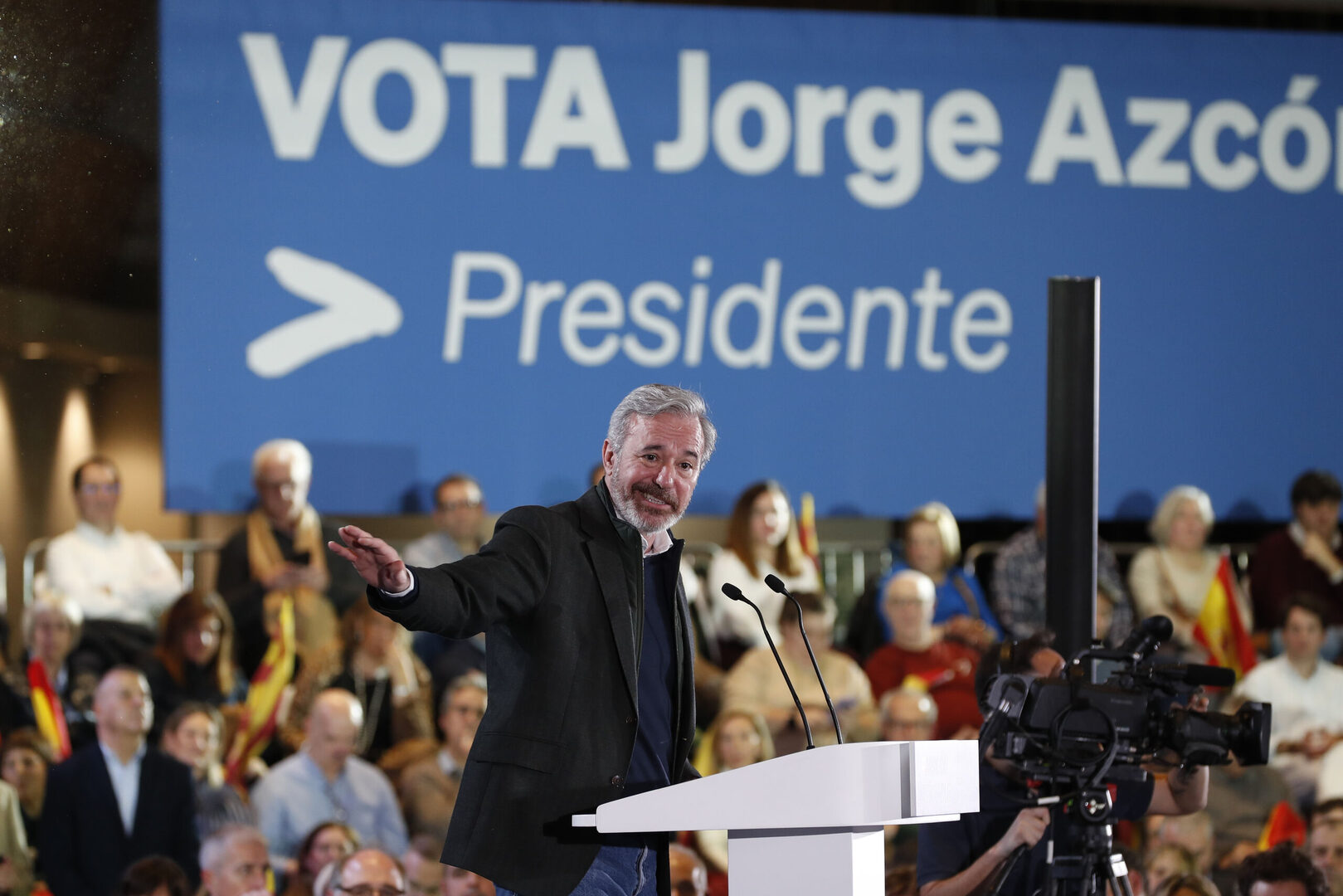 El candidato del Partido Popular, Jorge Azcón, interviene durante el acto de fin de campaña electoral del PP de cara a las elecciones en Aragón. | EFE