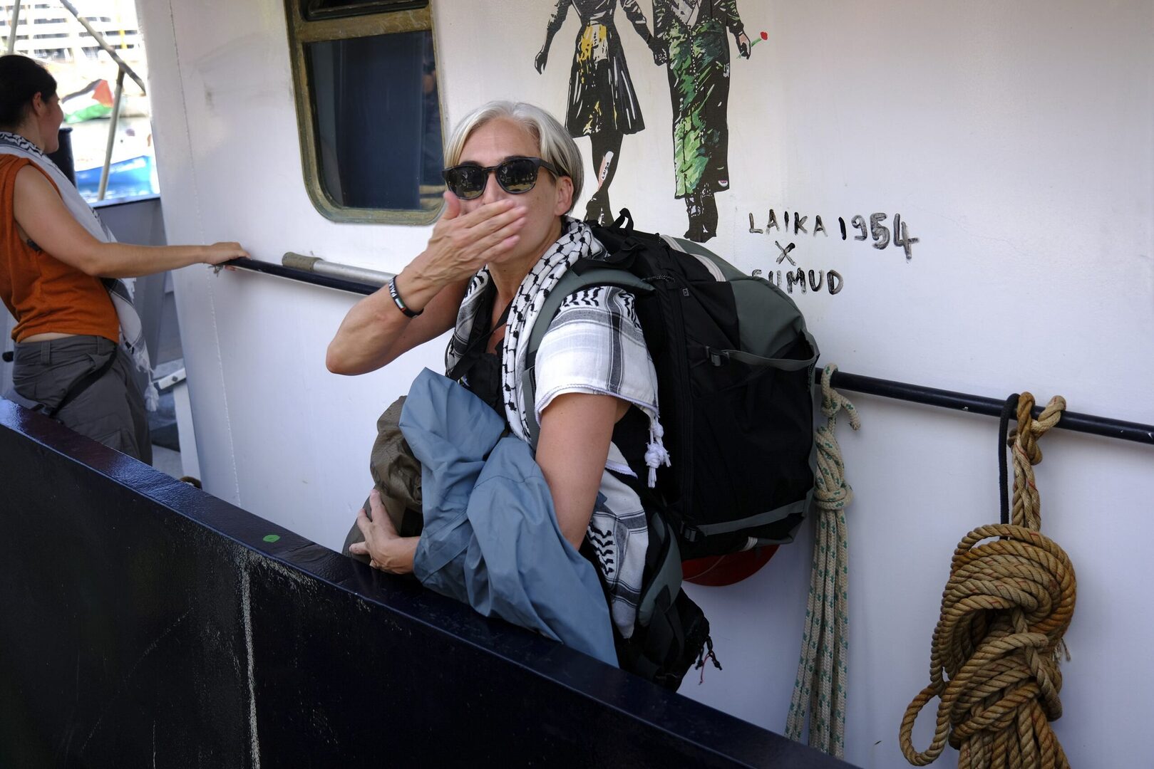 A ritmo de batucada y coreando "Free, free Palestine, Free, free Palestine, Free, free Palestine", así hasta el aburrimiento, han cruzado el mar Mediterráneo. A la ex alcaldesa de Barcelona, Ada Colau, se le ha hecho largo: "Estamos tardando más de lo que quisiéramos". Y ha contado que sólo lo ha soportado gracias "a los abrazos" y "que siento dentro de mí que es un punto de inflexión".