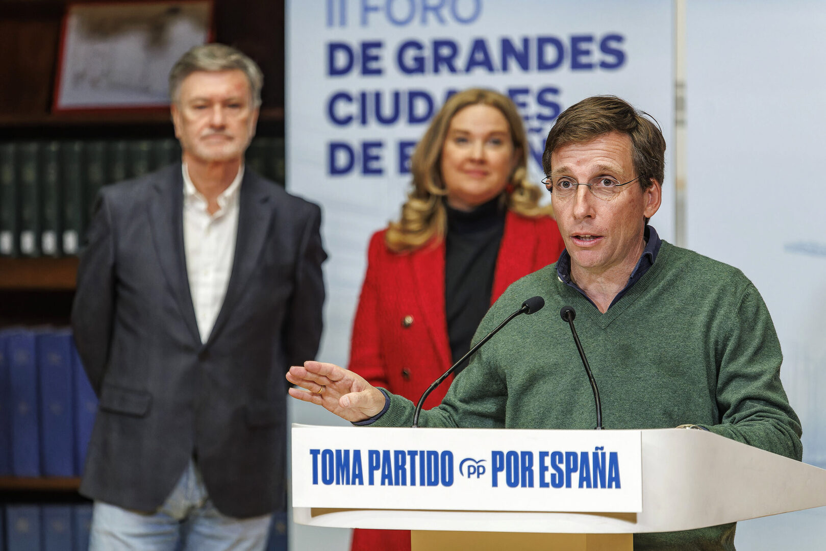 BURGOS, 28/11/2025.- El alcalde de Madrid, José Luis Martínez-Almeida, durante su intervención en la reunión de alcaldes del PP en el II Foro de Grandes Ciudades de España, este viernes en Burgos. EFE/Santi Otero | EFE