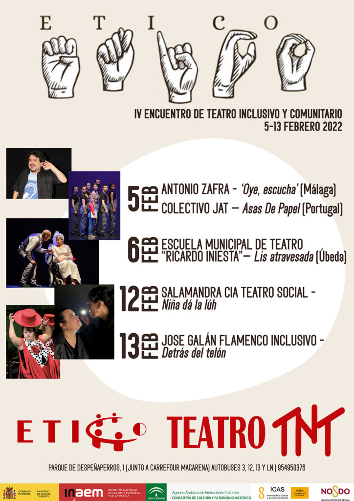 El Ciclo Ético, el Encuentro de Teatro Inclusivo y Comunitario cumple este 2022 su cuarta edición, y se desarrolla desde el 5 al 13 de Febrero. Una serie de compañías van a pasar por los escenarios del TNT Atalaya para dejarnos lo mejor del teatro, la danza y el flamenco más inclusivo y comunitario.