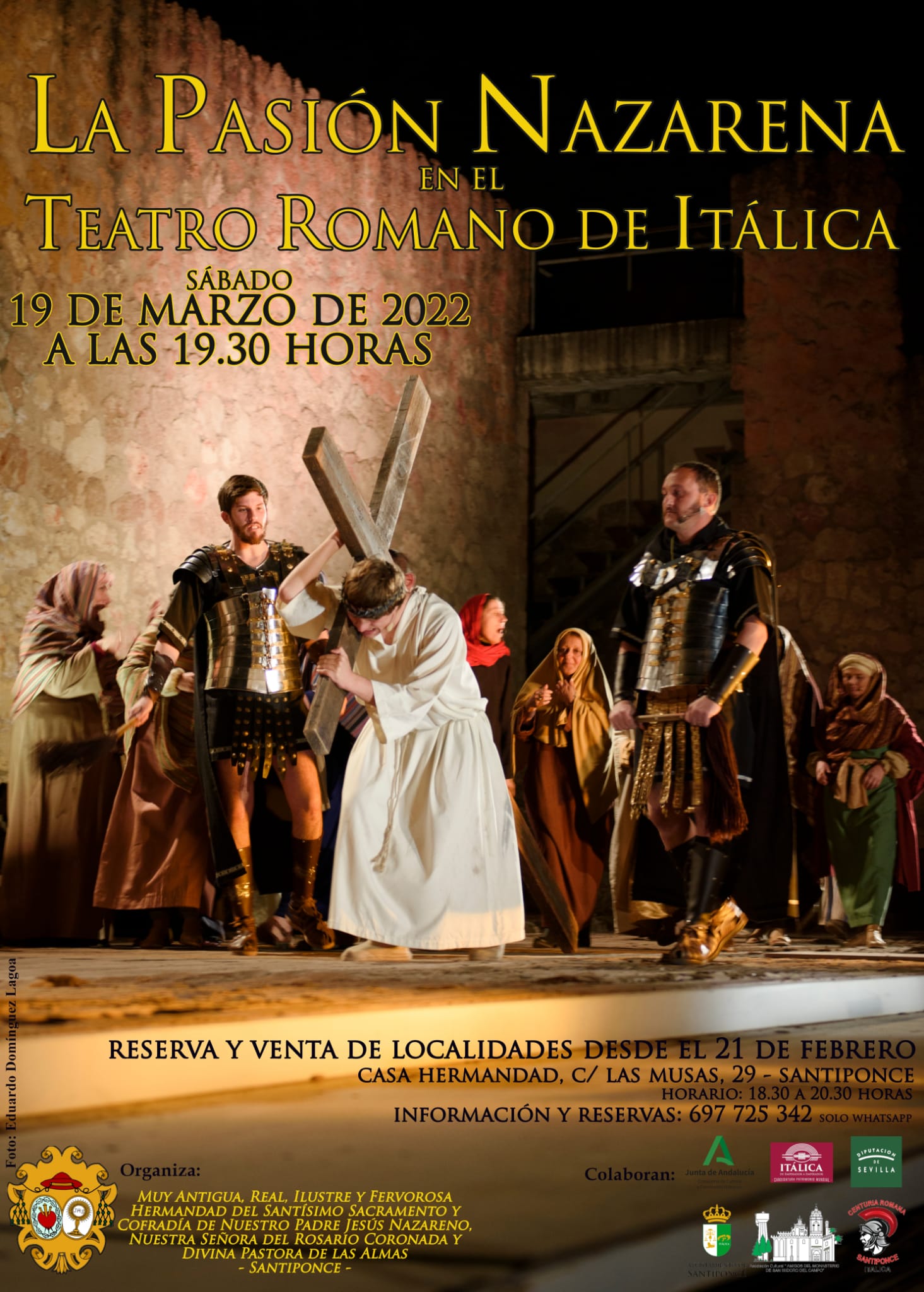 En la provincia de Sevilla, dentro de unas semanas, concretamente el 19 de Marzo, Día del Padre y San José en el santoral, se va a llevar a cabo otra de estas representaciones. Su nombre: "La Pasión Nazarena" y la Diputación de Formación y Juventud de la Hermandad del Rosario de Santiponce, es la entidad organizadora de la puesta en escena de la obra.