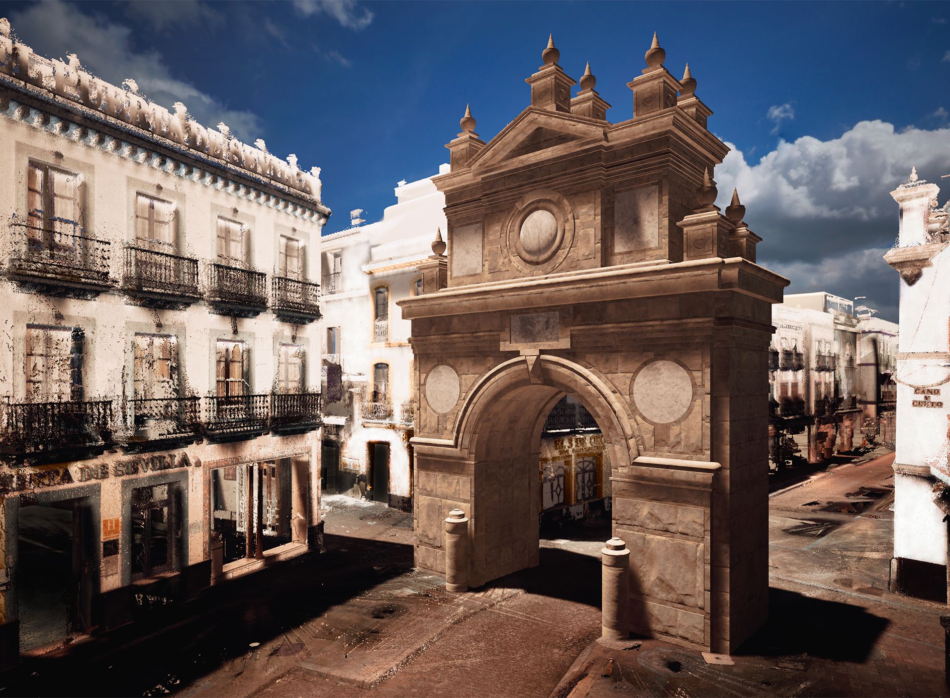 Un monumento del XVI que ha sido reconstruido gracias al uso de técnicas digitales, tras revisar y analizar datos e imágenes histórica. A partir de aquí, se ha modelado de forma digital, realizando un escaneado en 3D del entorno donde se asentó la puerta originalmente, haciendo uso de técnicas de motor gráfico empleadas en videojuegos. El trabajo realizado lo han publicado en la revista internacional Virtual Archaeology Review.
