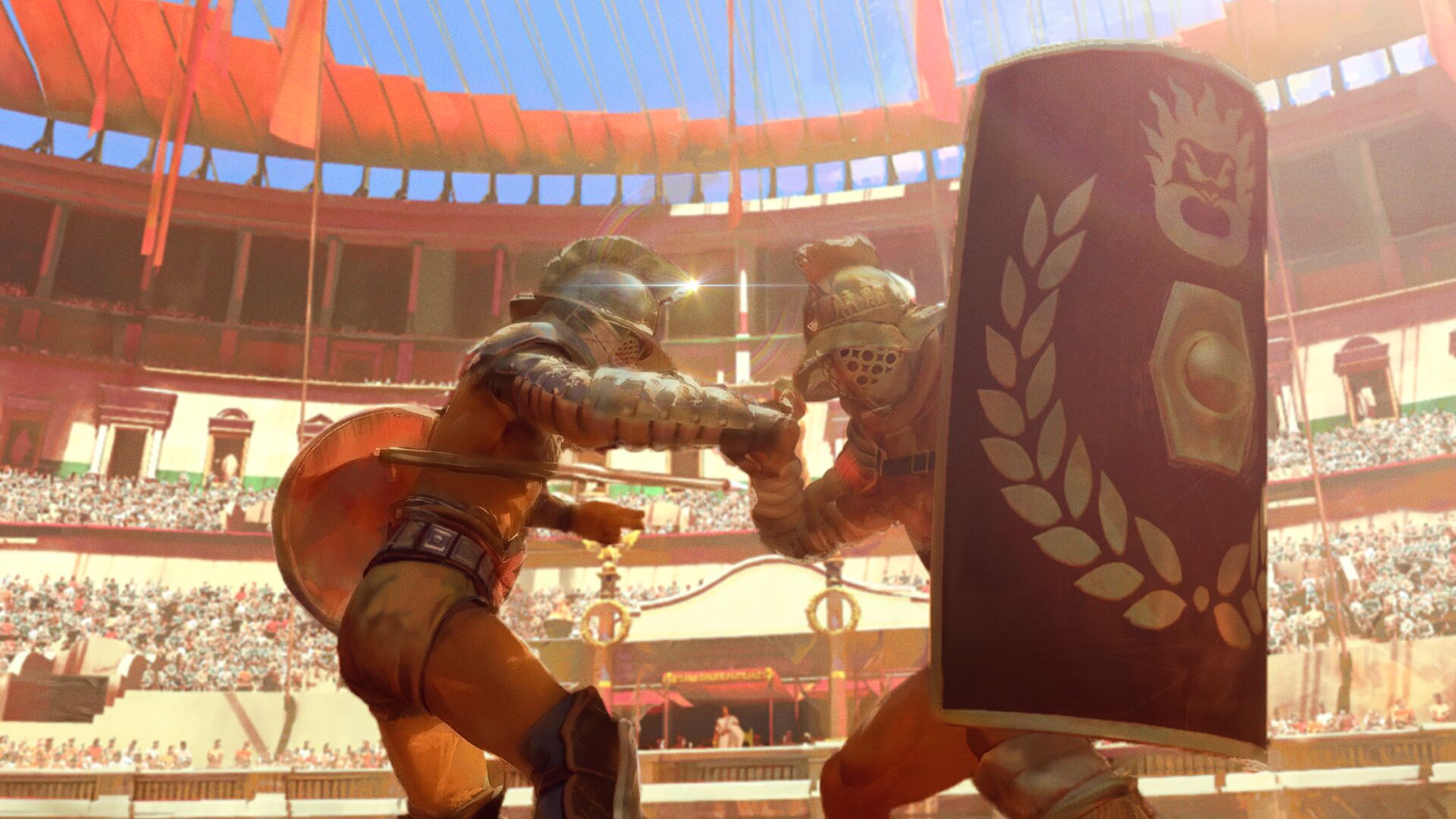 A través de la mirada de Cayo, un joven romano, los participantes se adentran en una recreación fotorrealista de la ciudad, explorando sus calles, los monumentos más emblemáticos de la antigua Roma, su cultura, arquitectura y costumbres, para después sentirse parte de un auténtico espectáculo en el majestuoso Coliseo. Allí, junto al legendario gladiador Flamma, vivirán la intensidad de los combates y la energía de una multitud virtual de 80.000 espectadores. Sin recurrir a la violencia explícita, los gladiadores vencidos se desvanecen en destellos dorados, simbolizando el honor y el espíritu del espectáculo romano.