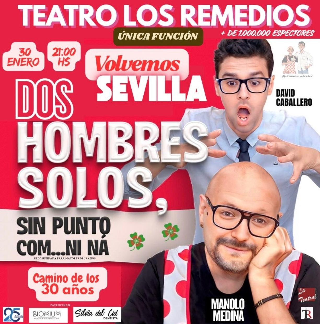 Hoy ha pasado por los micrófonos de esRadio Sevilla el actor jerezano Manolo Medina, dentro de la sección Focos a Escena. El próximo 30 de enero, en una única función, llega al Teatro de Los Remedios la comedia más longeva del país: Dos hombres solos, sin punto com... ni ná. Una obra que lleva representándose desde hace 27 años y que está protagonizada por Manolo Medina y David Caballero.