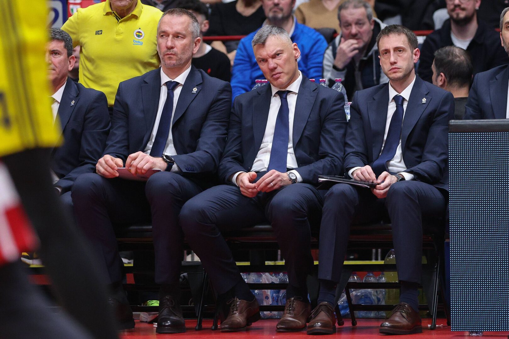 Banquillo del Fenerbahce en la Euroliga 2024-25: a la derecha, David García, junto a Sarunas Jasikevicius. | Cordon Press